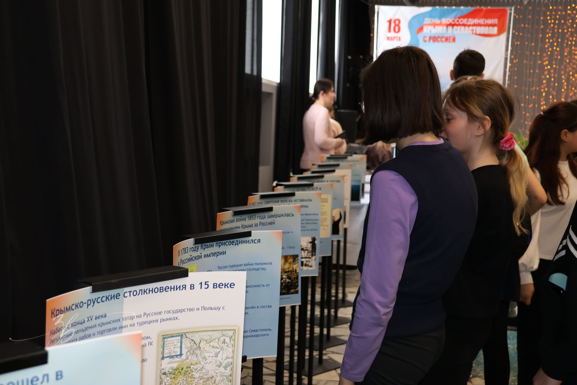 В честь знаменательной даты на глазах у присутствующих состоялось открытие двух экспозиций. Первая - выставка «Крымская весна», посвященная ключевым моментам воссоединения полуострова с Россией. Вторая - фотовыставка «Крым в сердце моём», автором которой стала местная Елена Градова, представившая уникальные снимки из своего личного фотоархива.