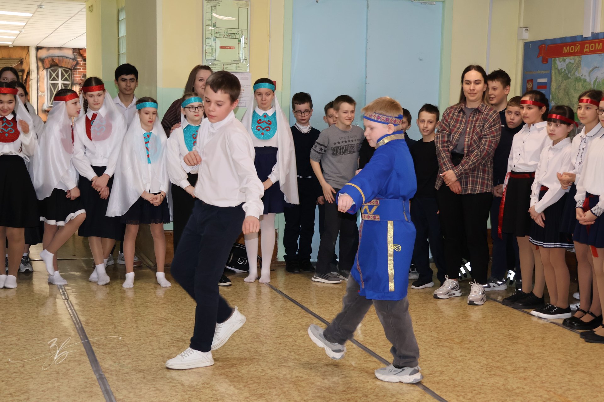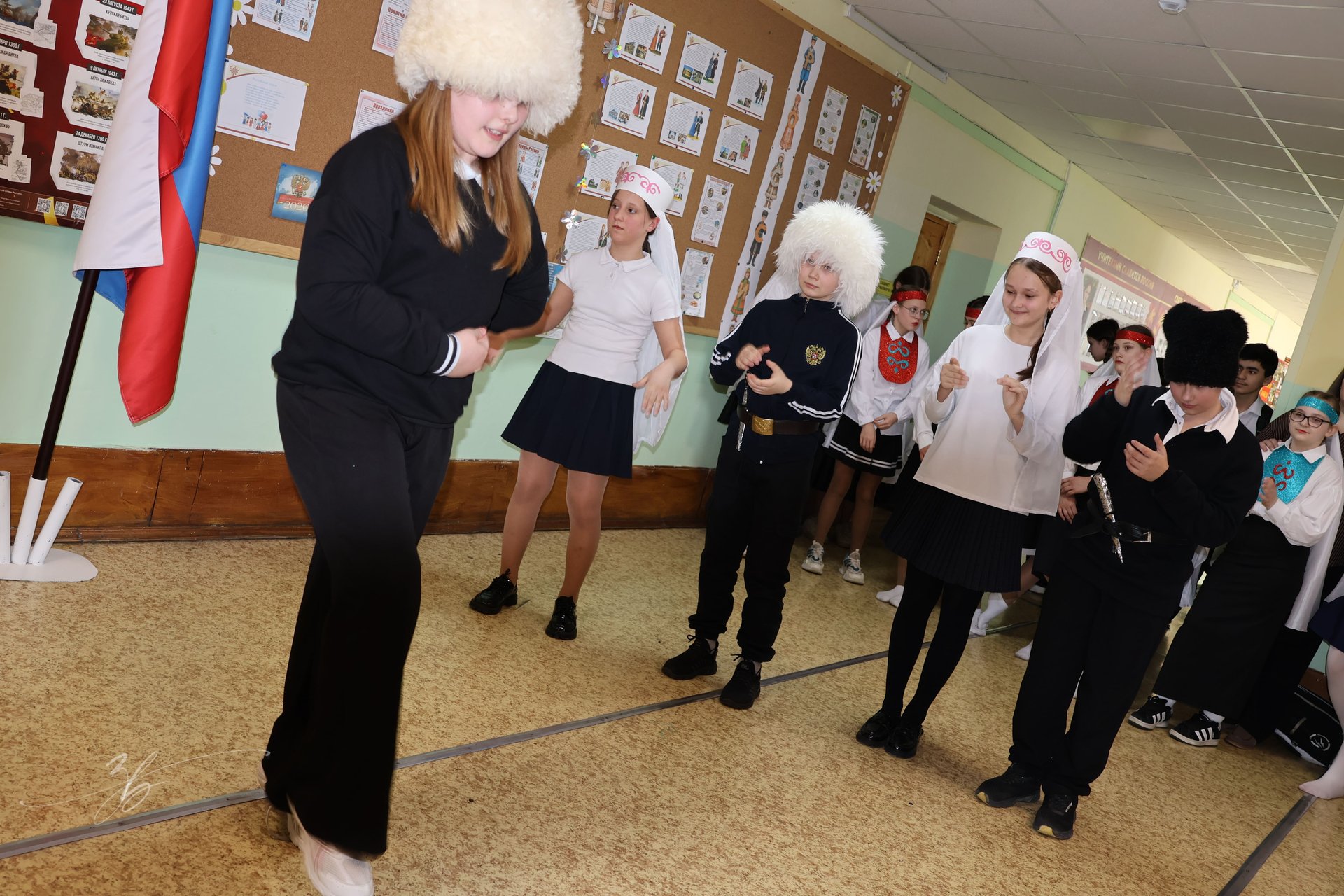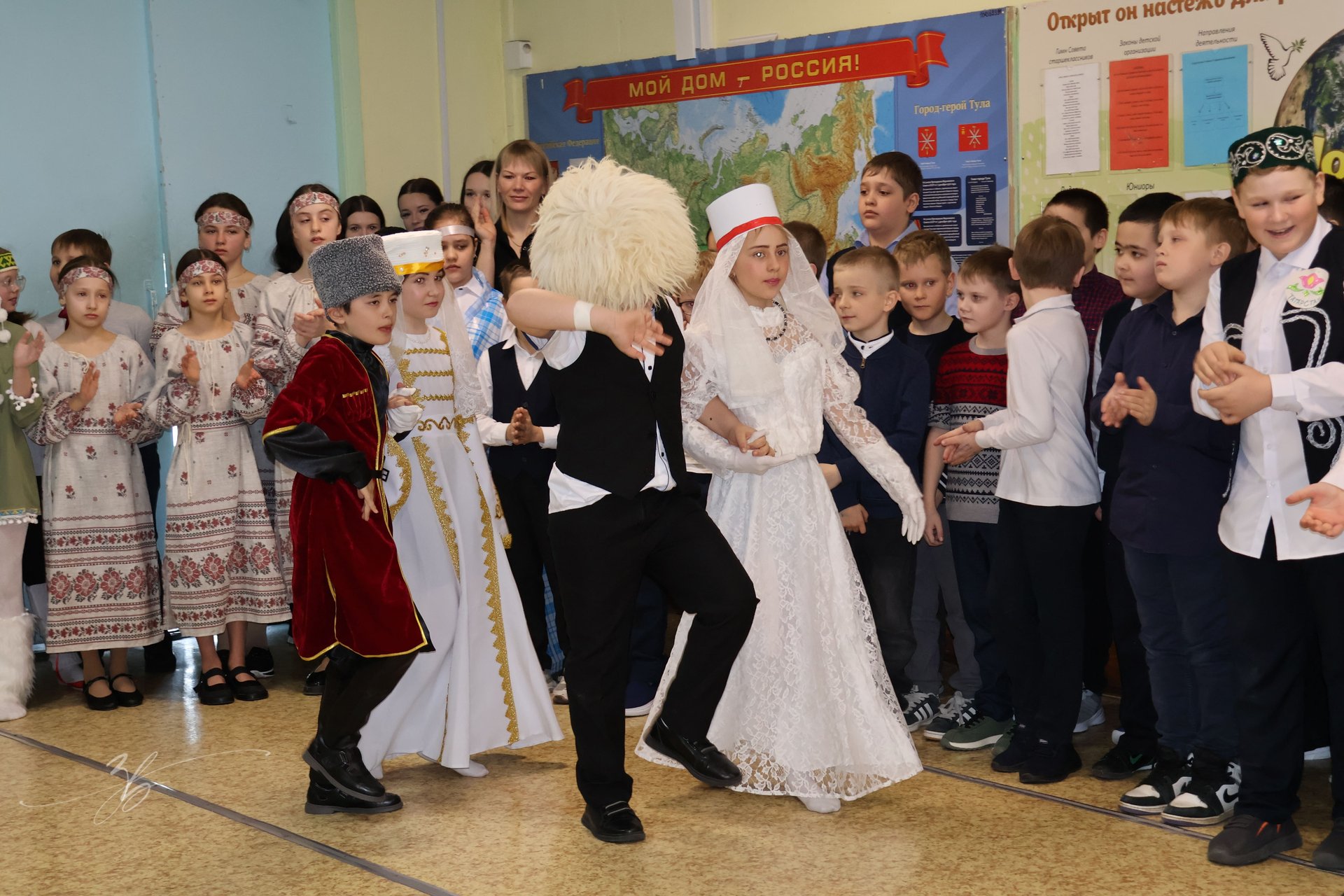 Не менее впечатляющими стали танцевальные номера, подготовленные классами. Каждый класс представил свой зажигательный и красивый танец, который сопровождался живой музыкой и энергией юных исполнителей. Танцы отражали национальные традиции и были наполнены радостью, дружбой и гордостью за Родину. Зрители с восторгом аплодировали каждому выступлению.