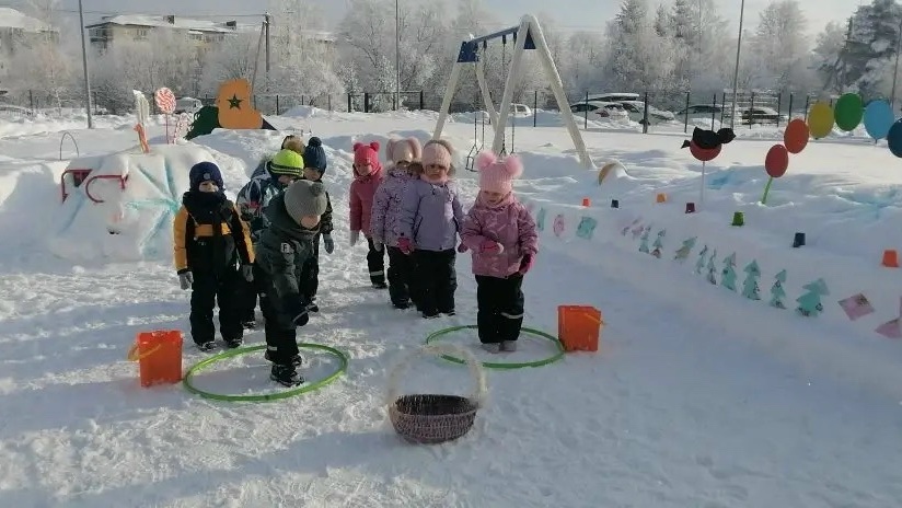 Площадка Заокского детского сада №1, благодаря творчеству воспитателя и детей из группы «Солнышко», превратилась в арену захватывающих зимних соревнований.