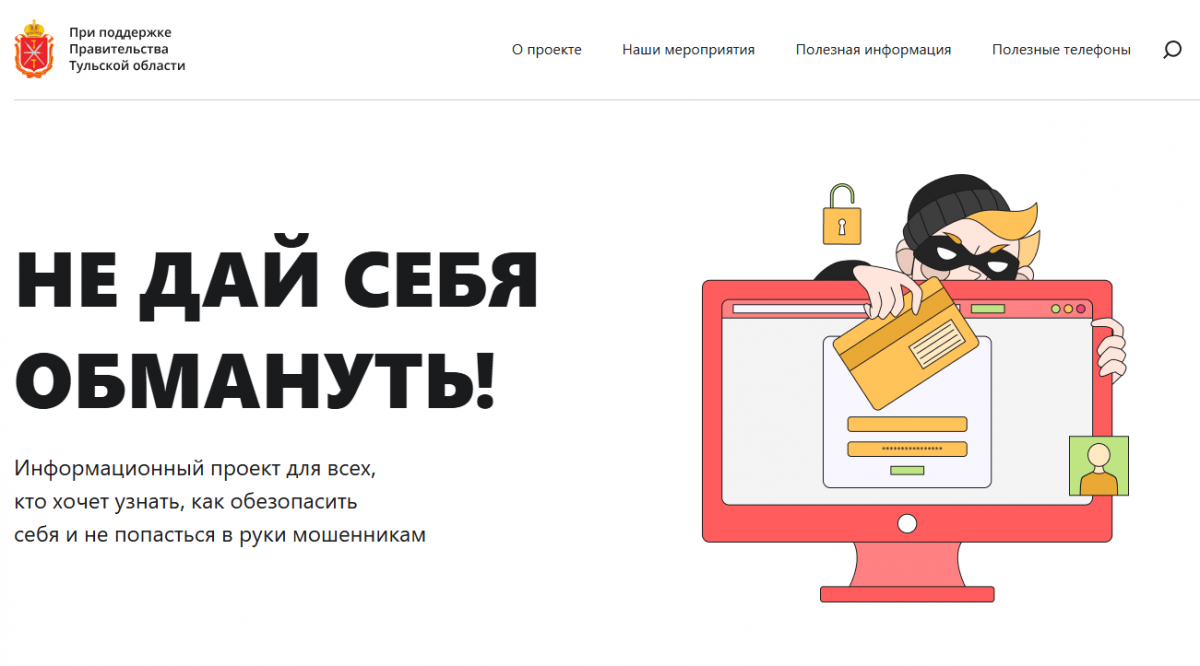 В Тульской области работает информационный проект для всех, кто хочет узнать, как обезопасить себя и не попасться в руки мошенникам. На сайте проекта https://help.tularegion.ru/ жители региона могут разобраться, как работают злоумышленники, и научиться, как защитить себя и своих близких.