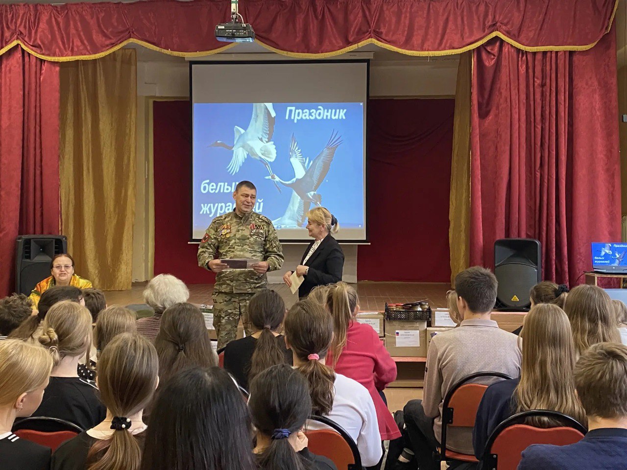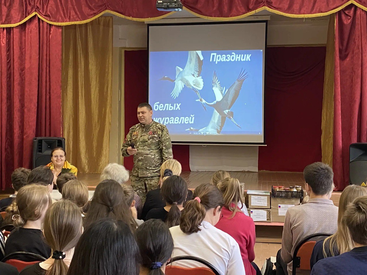 Вторая встреча прошла в День белых журавлей, день памяти о погибших защитниках Отечества. В школе побывал боевой офицер с позывным «Самсон», а также руководитель группы «Везём своим» Галина Викторовна Садомскова. Совместно со школьниками и представителями волонтёрского движения организаторы провели содержательный разговор о значении службы, взаимопомощи и уважения к ветеранам. Дети демонстрировали высокий уровень подготовки: задавали осмысленные вопросы, проявляли искреннюю заинтересованность, обсуждали важность моральной поддержки для военнослужащих. Сам факт, что офицер, несмотря на волнение, остался очень доволен встречей, – показатель того, как необходимы школьные диалоги с людьми, имеющими реальный боевой опыт.