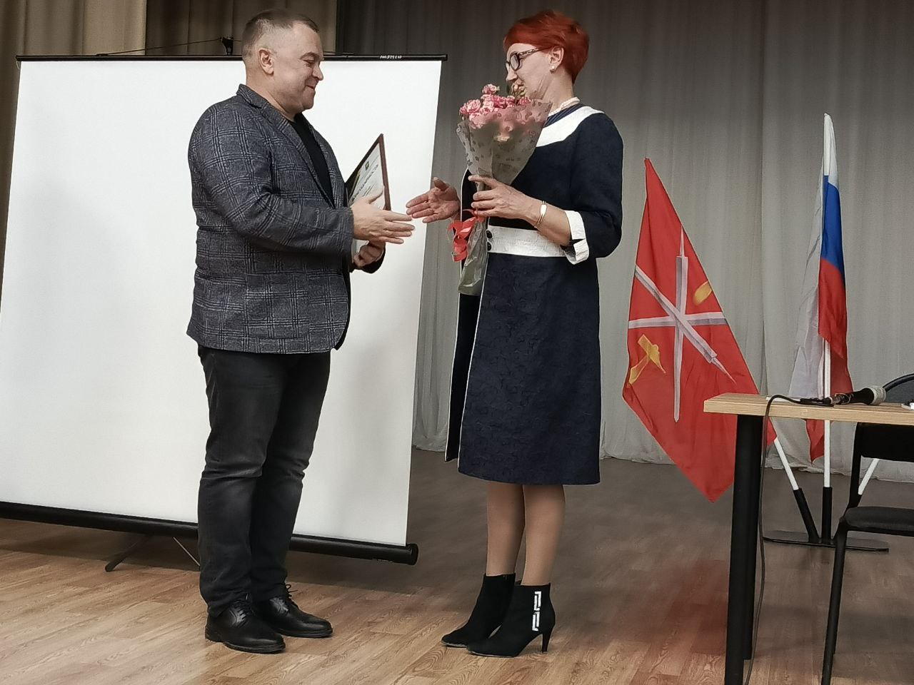 После продуктивного обсуждения насущных вопросов состоялась торжественная церемония награждения. Юрий Волченков вручил благодарности сельским старостам за их активную общественную деятельность, энтузиазм и личный вклад в развитие сельских населённых пунктов Заокского района. Награды получили: