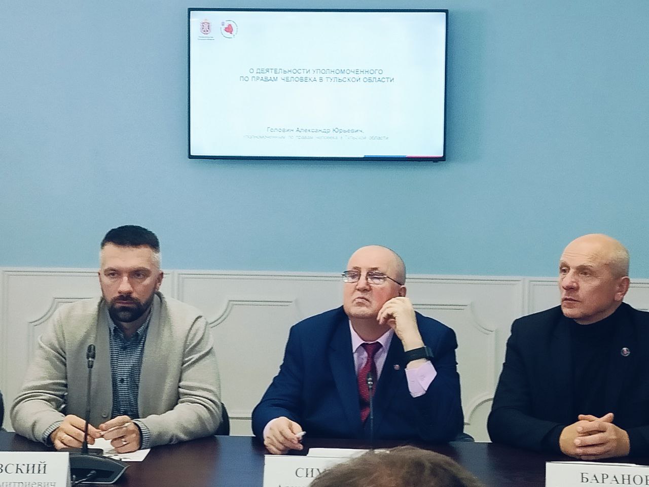 На заседании палаты документально также было закреплено уже сложившееся по факту сотрудничество Общественной палаты Тульской области и Уполномоченного по правам человека в регионе Александром Головиным. Юрий Цкипури и Александр Головин под аплодисменты собравшихся подписали соглашение и обменялись рукопожатием. Александр Головин выразил глубокое удовлетворение тем, что его основная на сегодня деятельность, связанная с поиском пропавших без вести участников СВО и защитой прав сражающихся Героев, получит мощную поддержку, понимание и помощь со стороны Общественной палаты Тульской области.