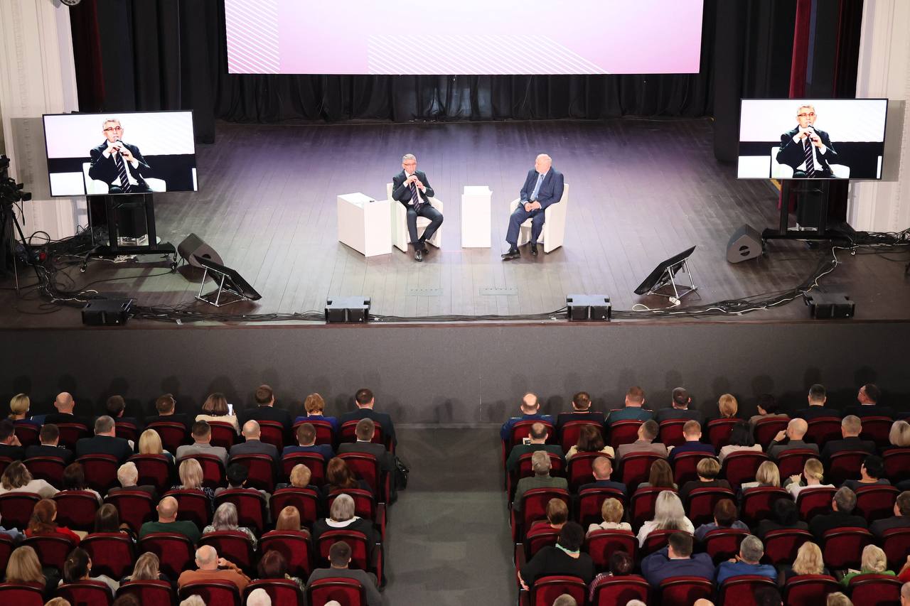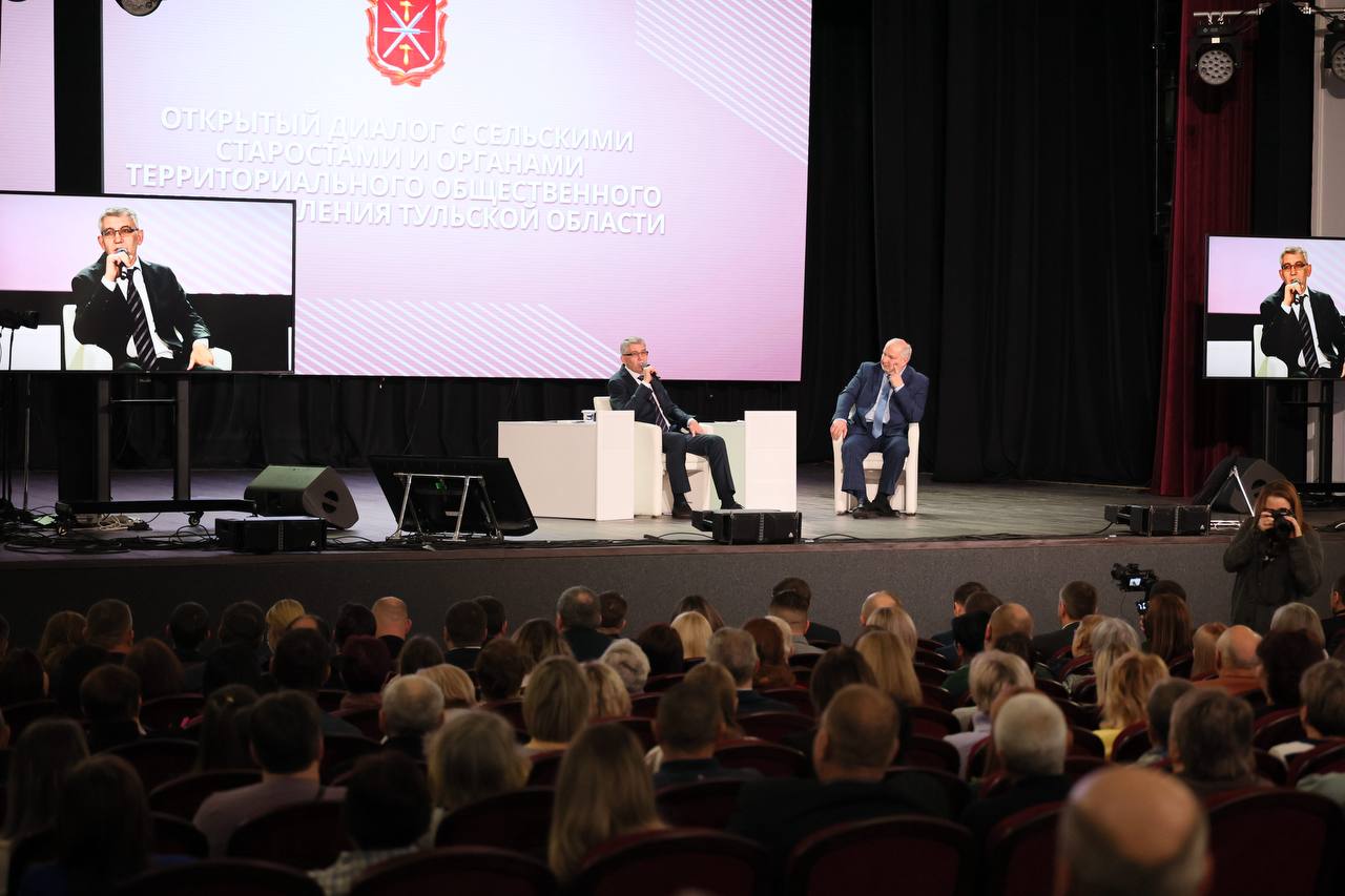 23 декабря в Тульском областном центре молодежи Губернатор Дмитрий Миляев встречается с сельскими старостами и руководителями территориального общественного самоуправления (ТОС) региона. Впервые встреча Губернатора с жителями проводится в формате открытого диалога по вопросам местного значения. На нее пришли порядка 500 представителей общественных институтов из шести муниципалитетов: Тулы, Алексина, р.п. Новогуровский, Дубенского округа, а также Щекинского и Заокского районов. Глава региона вместе с сельскими старостами и руководителями ТОС подводит итоги года, обсуждает результаты работы и планы на будущее.