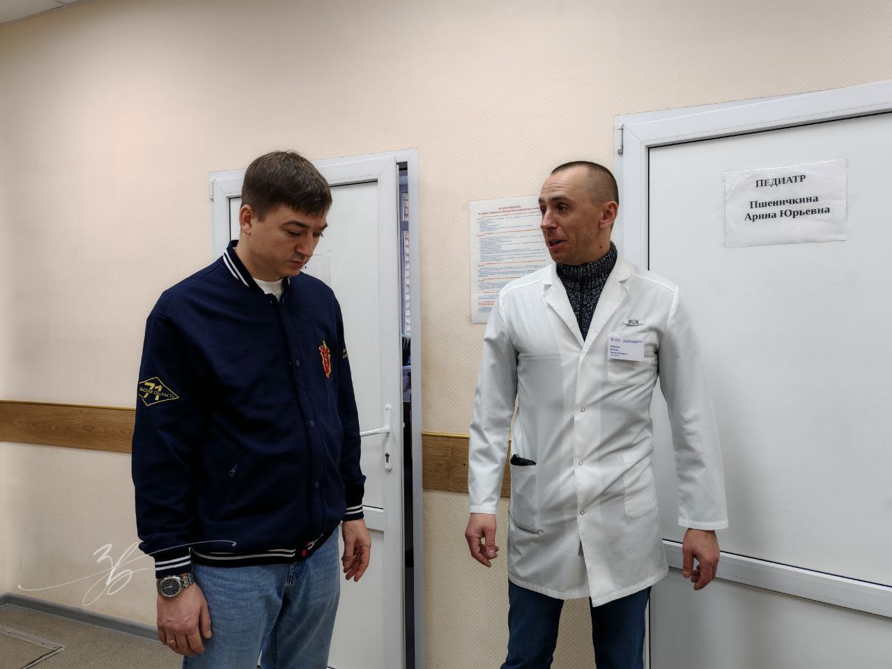 Сергей Мухин лично проверил организацию дежурств и доступность медицинской помощи: он посетил кабинеты врачей, ведущих приём, а также проинспектировал стационар терапевтического отделения и детское отделение больницы.