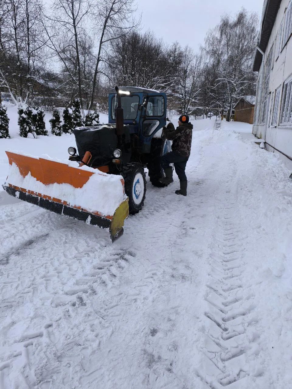 Там, где ручного труда было недостаточно, на помощь пришла спецтехника. Тракторы расширили проезды и расчистили площадки для разгрузки транспорта, обеспечив свободный доступ к зданиям.