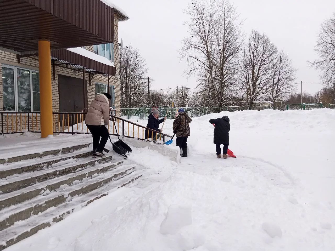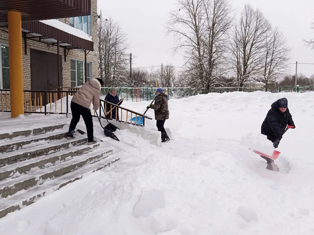 На борьбу со стихией вышли все: от руководства и учителей до технических сотрудников. Вооружившись лопатами, педагогические десанты расчистили парадные входы, лестницы и пешеходные дорожки на пришкольных территориях. Особое внимание уделили безопасности: ступени и подходы были тщательно освобождены от снежных завалов.