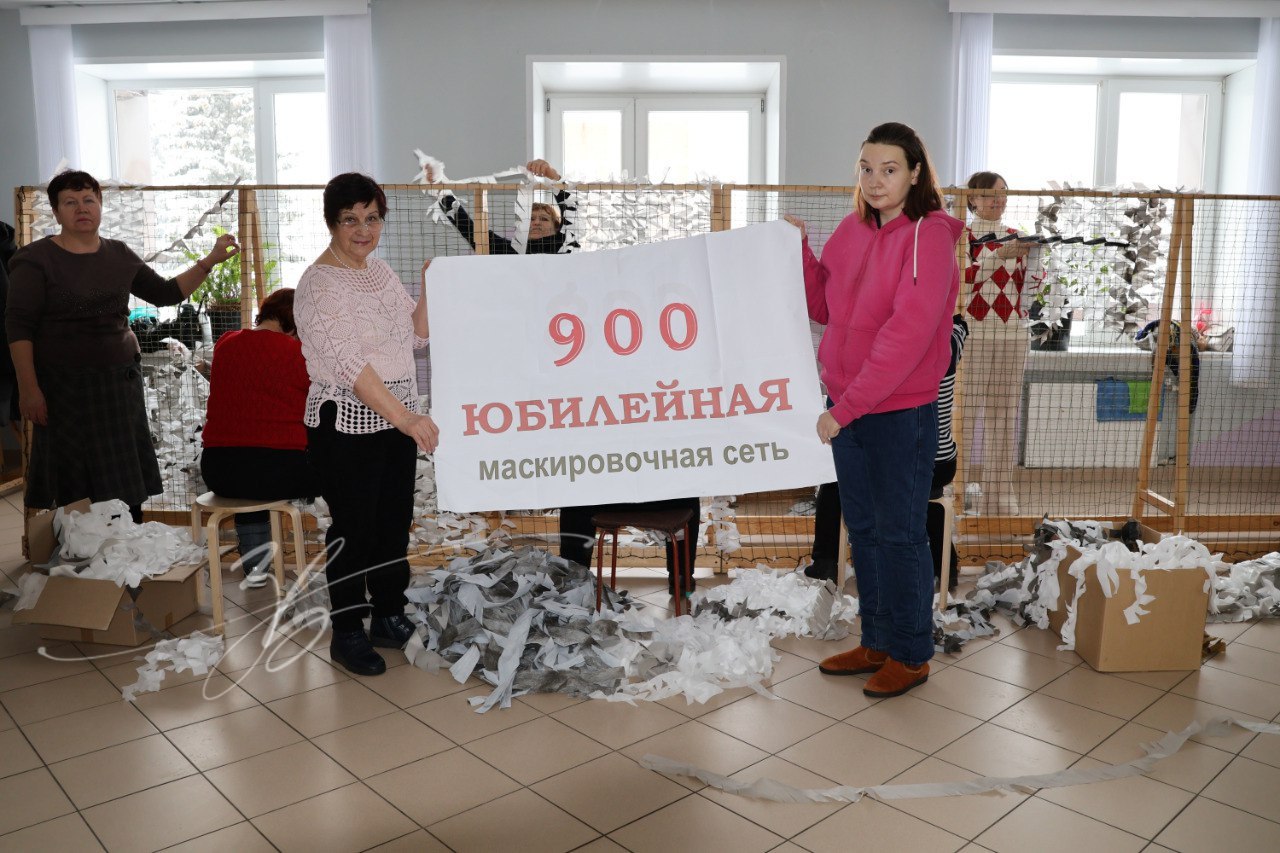 В Заокском районе сегодня состоялось важное событие — женсовет Заокского района Тульского регионального отделения Союза женщин России завершил плетение 900-й юбилейной маскировочной сети, предназначенной для поддержки российских военнослужащих, участвующих в специальной военной операции (СВО).